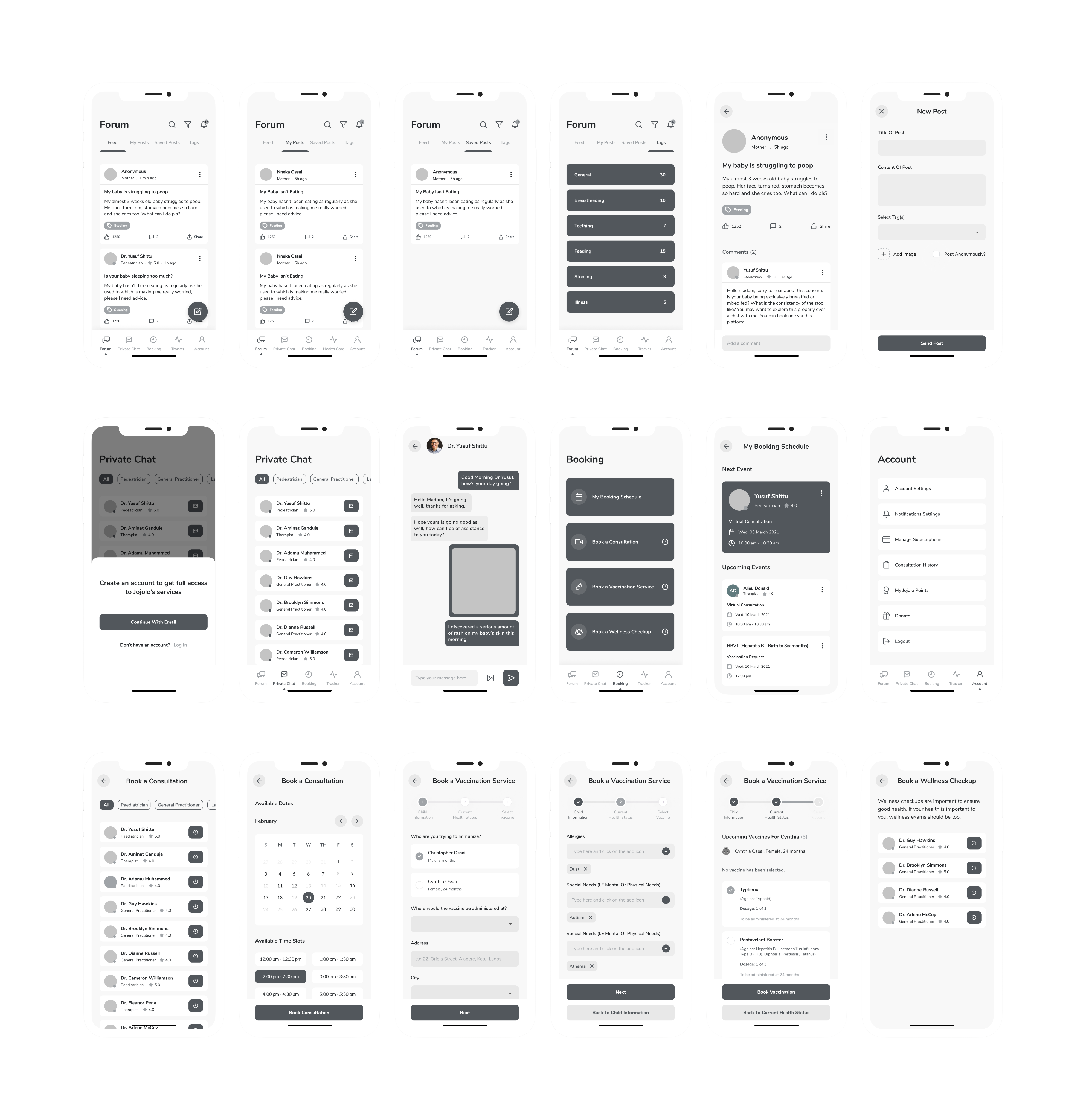 The insight from the competitive analysis made us realize that all the apps listed offered the same service: a forum, a chat, and booking features.