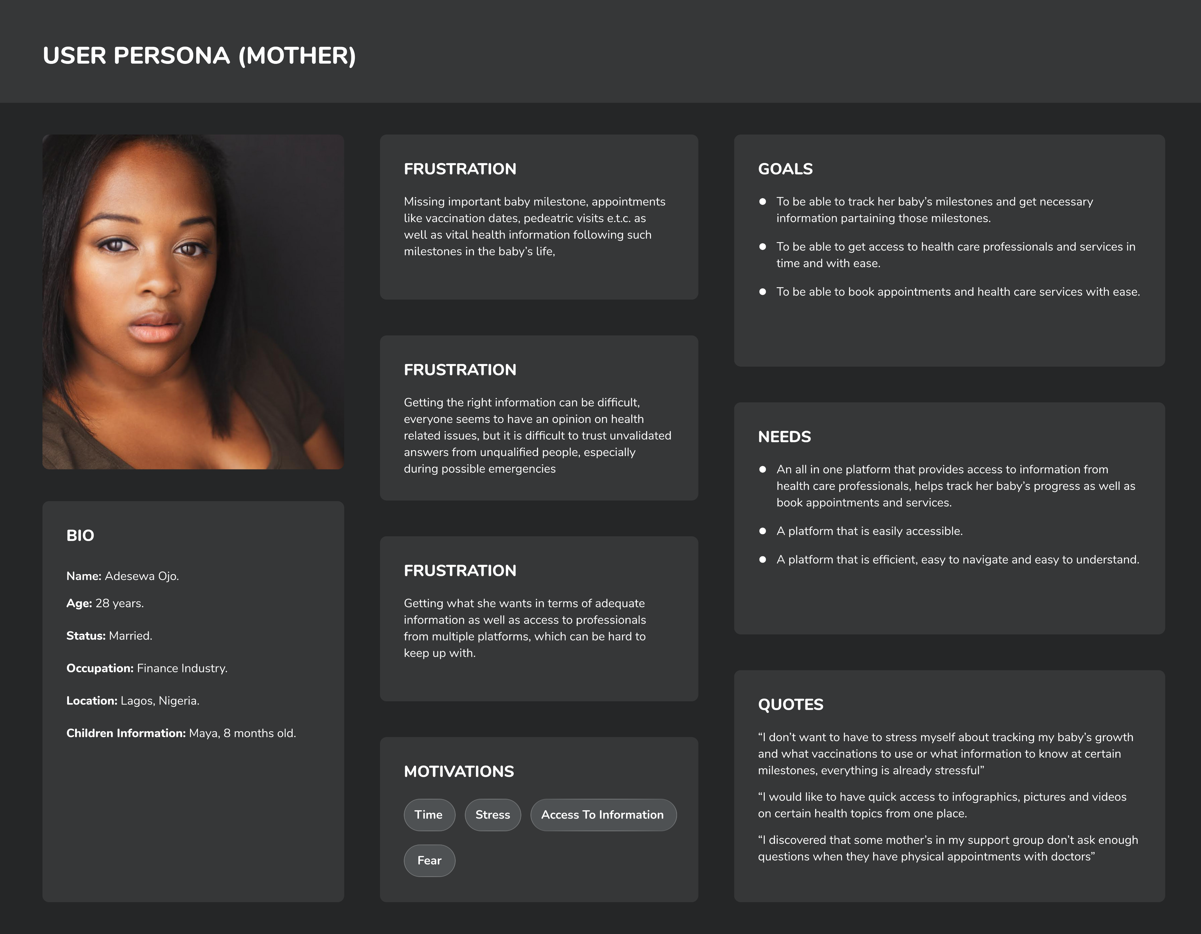 From a UX perspective, it was crucial to understand the mental load that parents experience, especially concerning their baby's health and development. Streamlining the process of tracking growth and vaccinations is not just about convenience; it's about alleviating stress and promoting peace of mind.