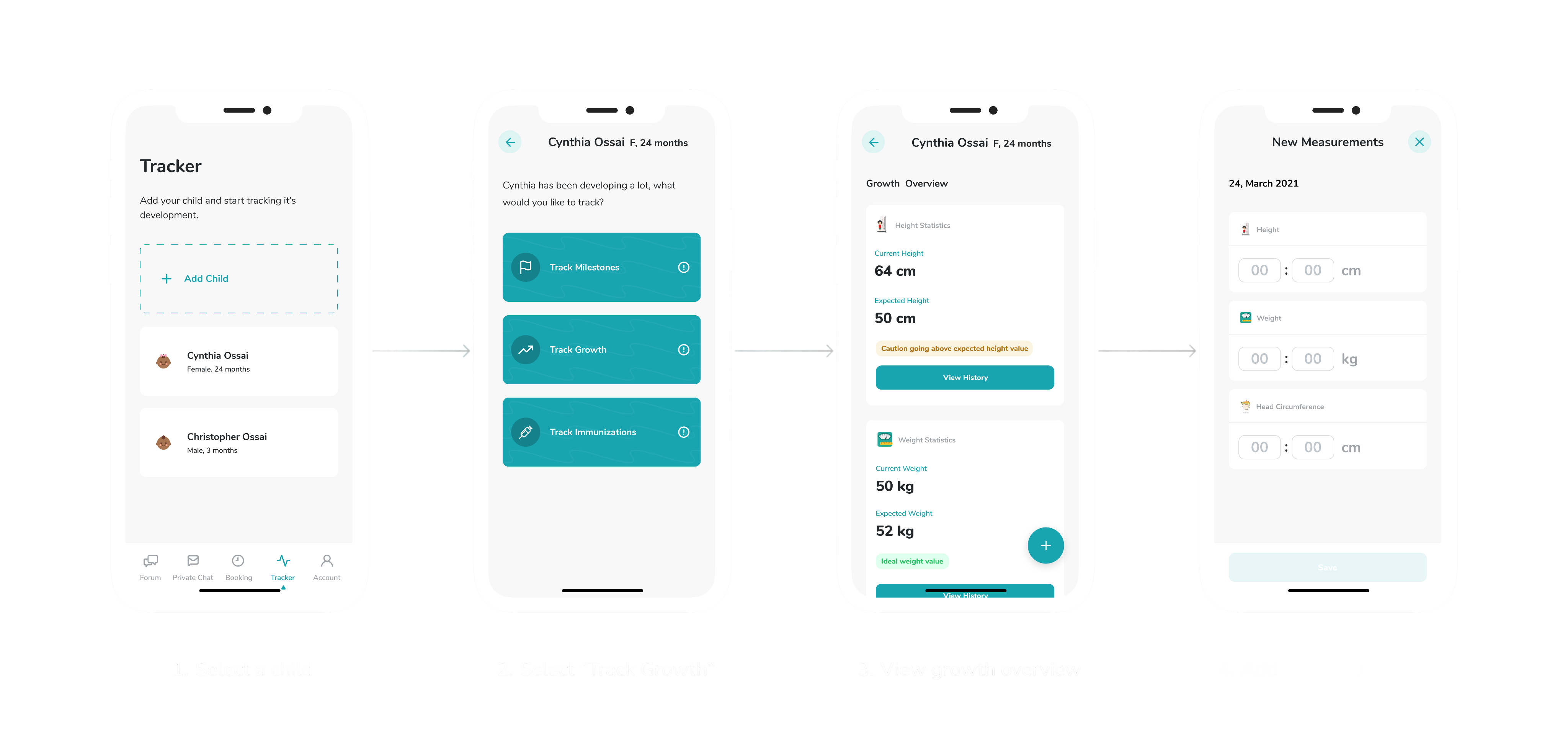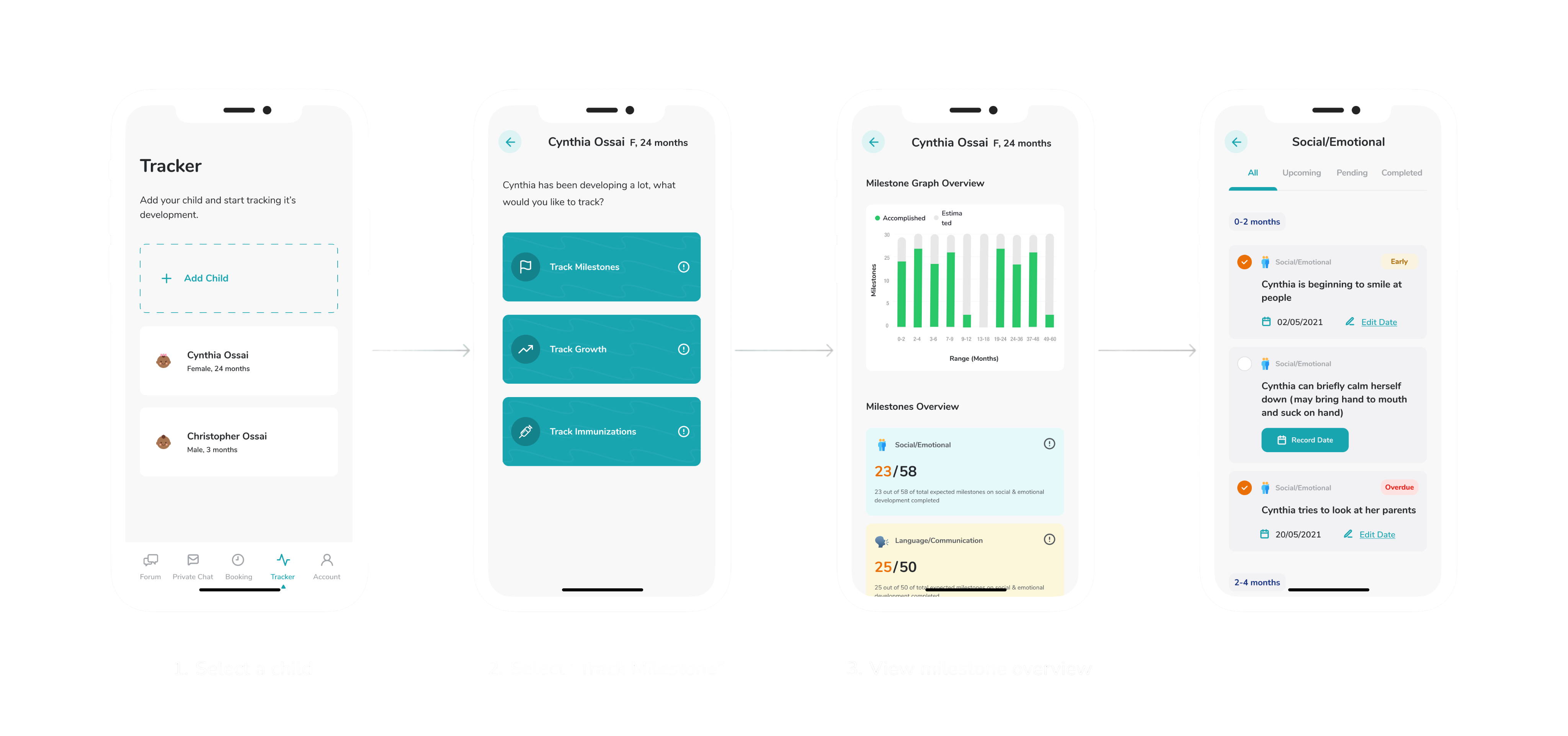 By establishing these profiles upfront, mothers can personalize their tracking experience and access tailored insights and recommendations based on each child's unique developmental journey.