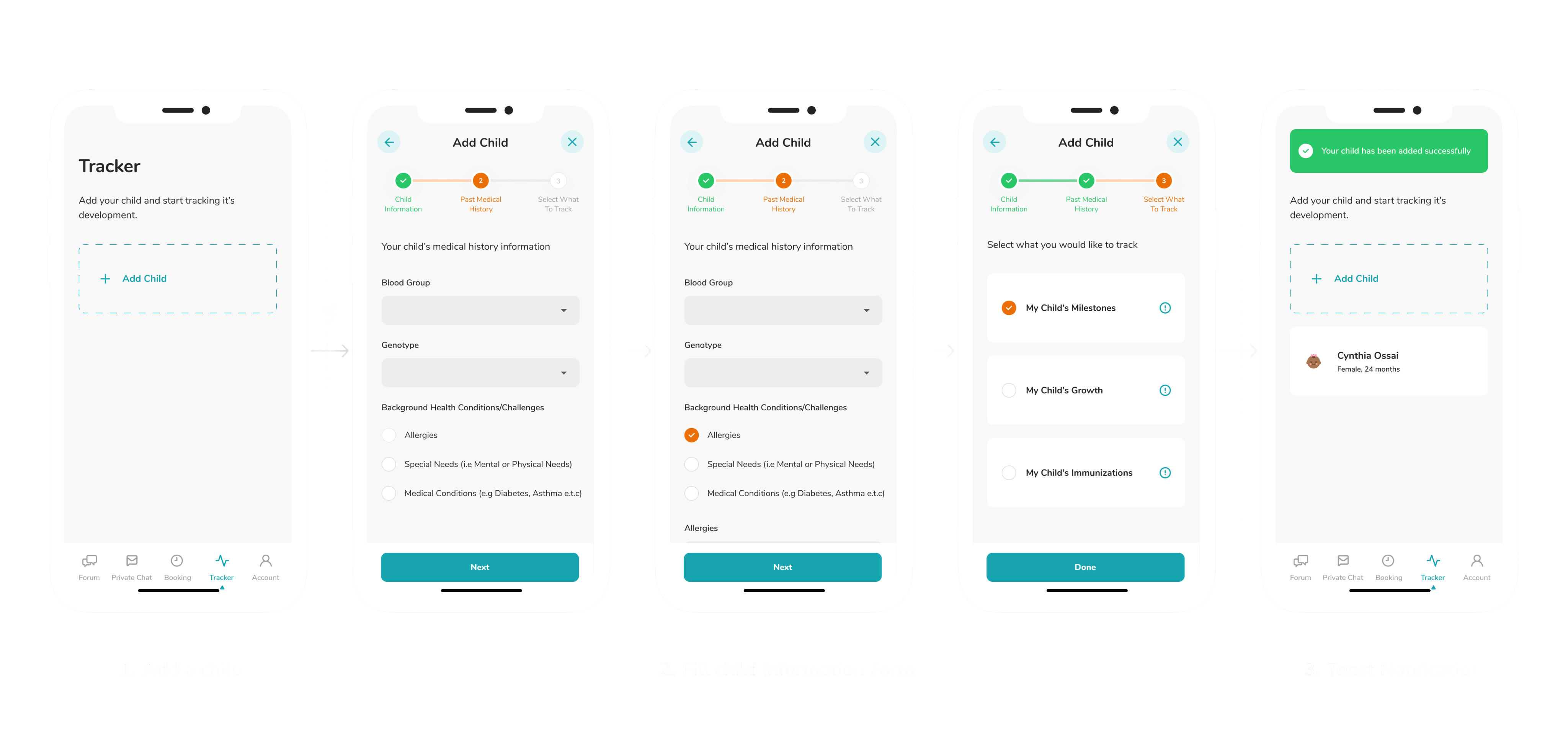 This thoughtful approach to user onboarding helps to create a personalized experience, ensuring parents feel supported and empowered in tracking their baby's health and development milestones.