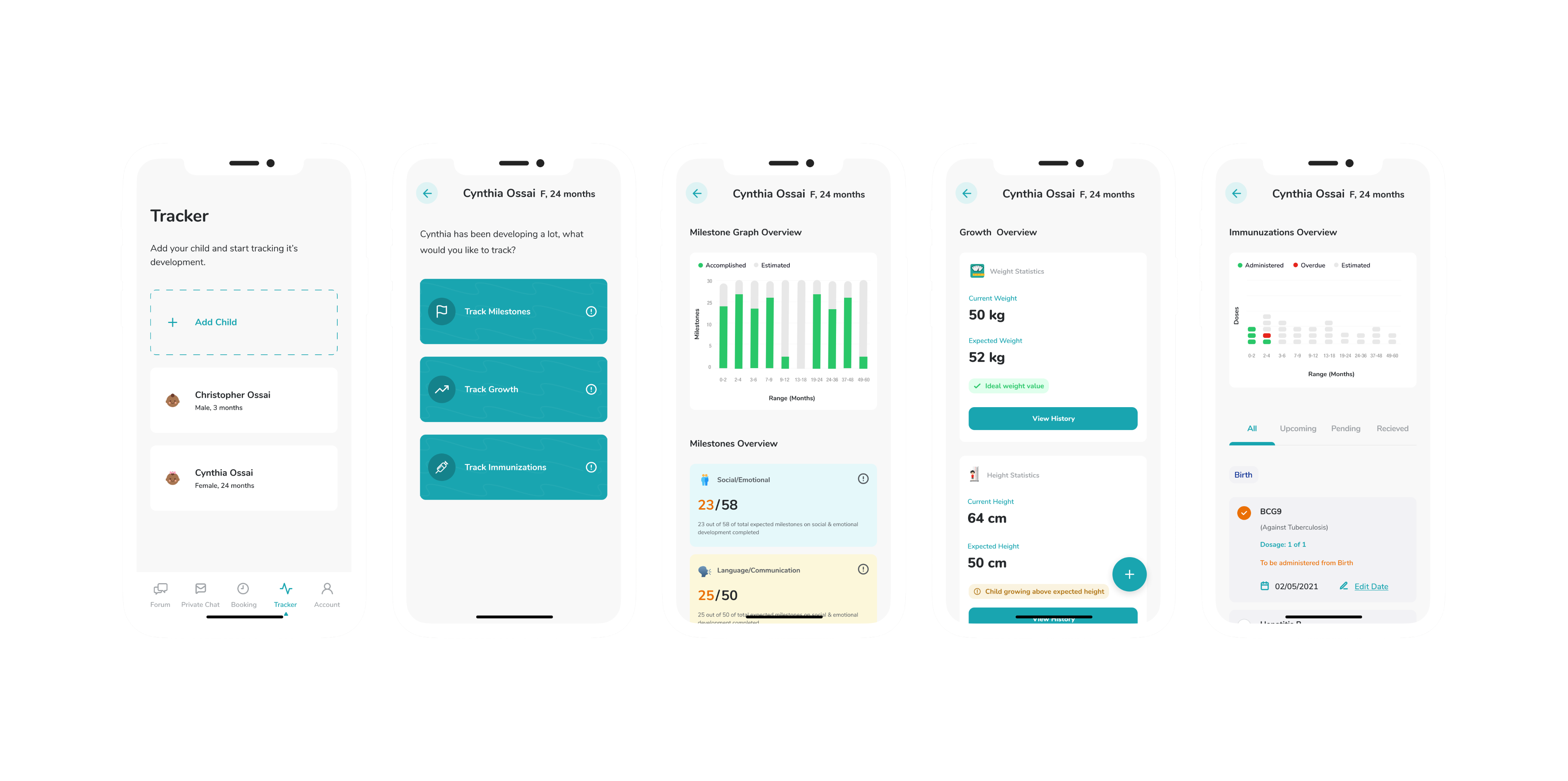 We introduced a comprehensive suite of features tailored specifically for parents to track their baby's development milestones, growth progress, and immunization appointments seamlessly.