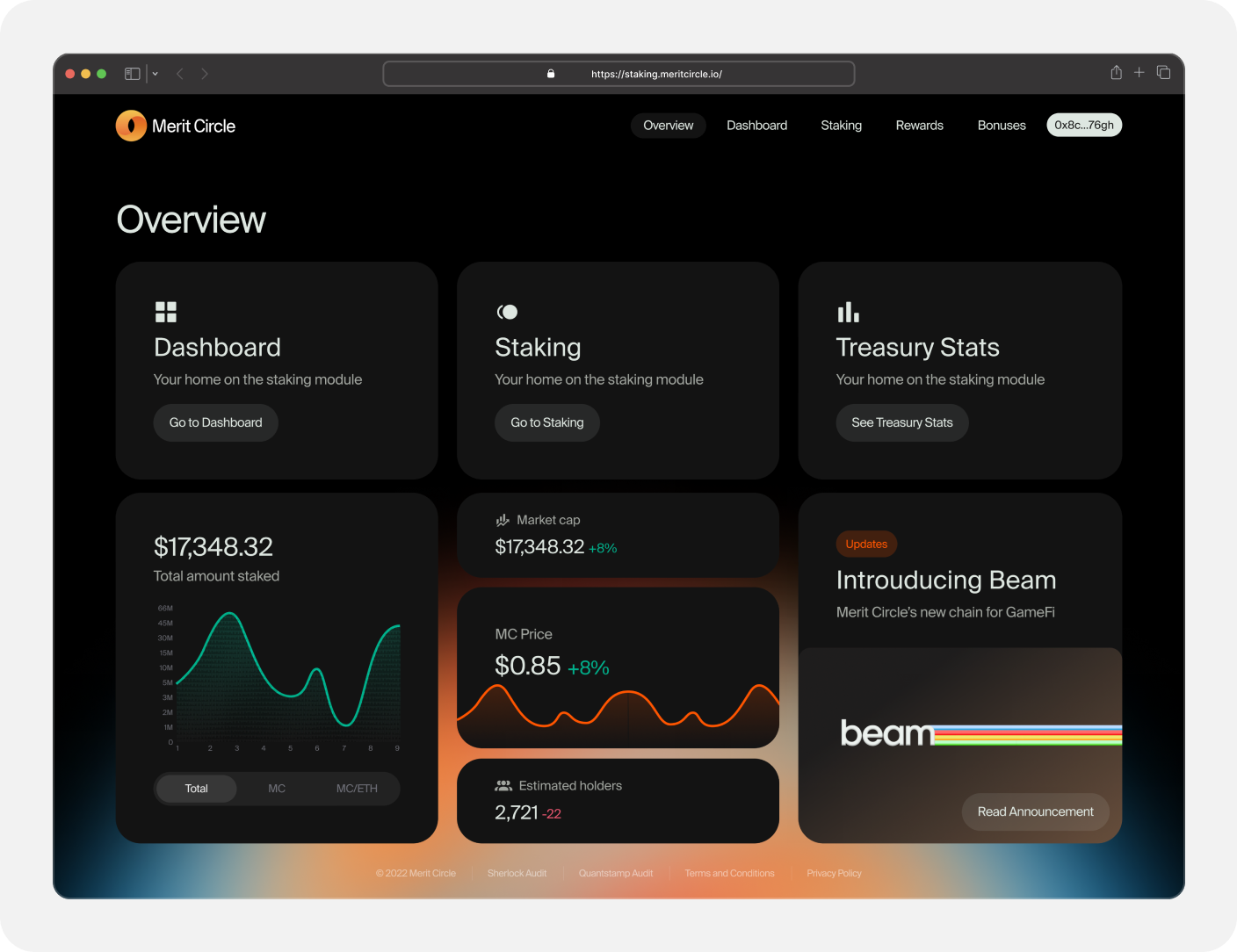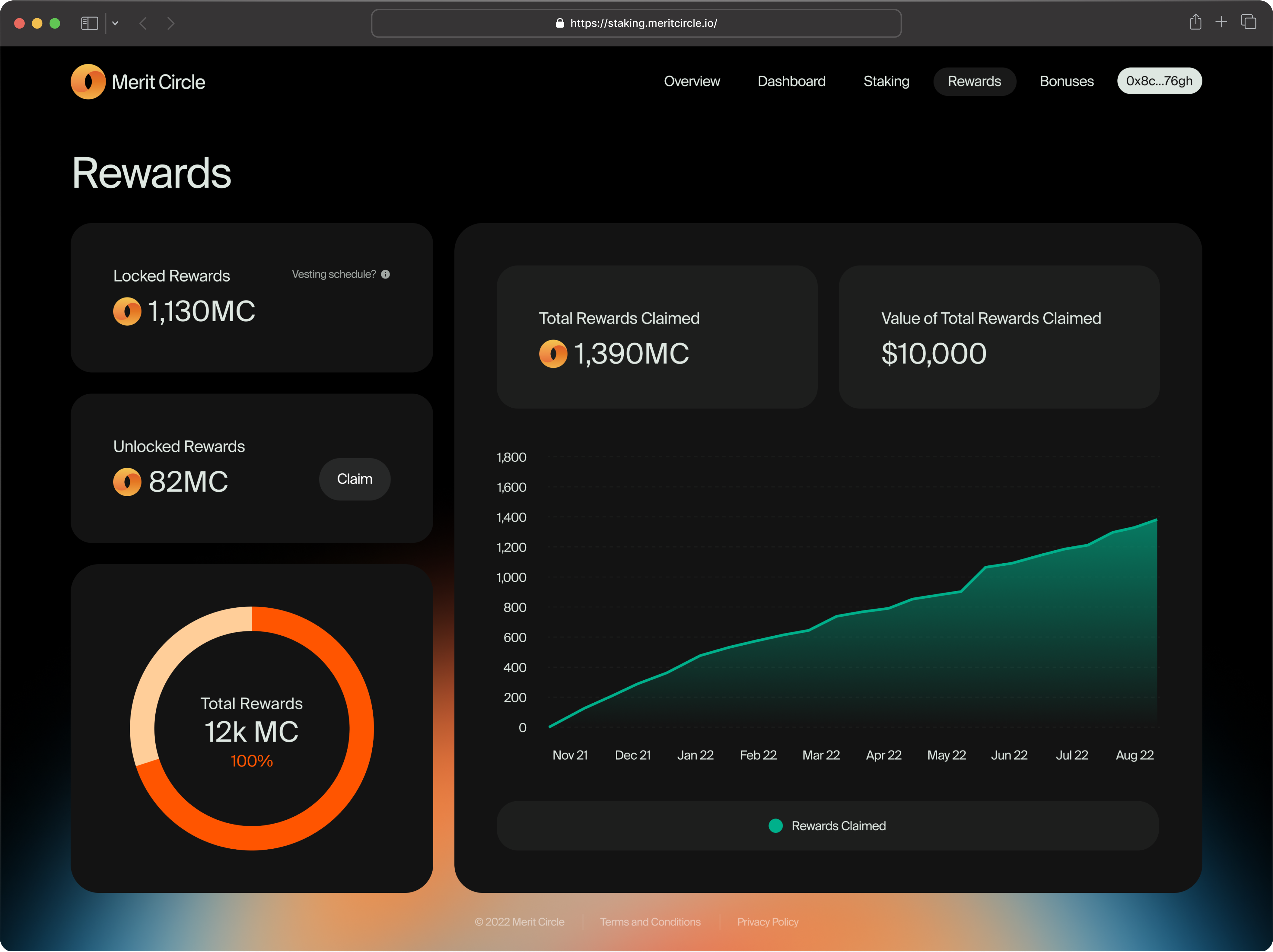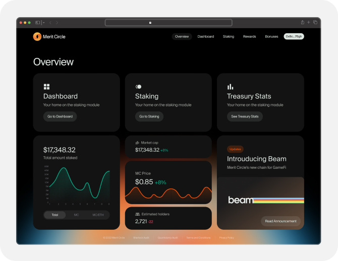 Through Dashboard, users will not only be able to see their portfolio in the Merit Circle ecosystem, but also will have their own control center with a bird’s eye view of it. Hence, they can easily track all of their staking activities, and avail the information such as the amount staked and the rewards for withdrawal.